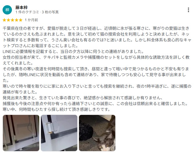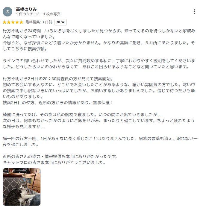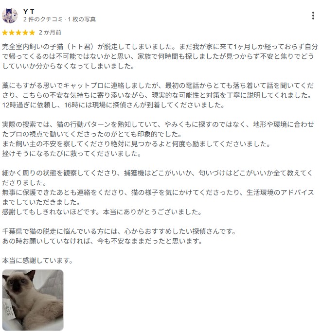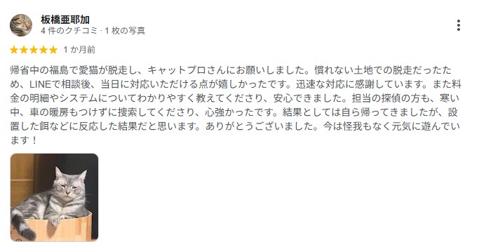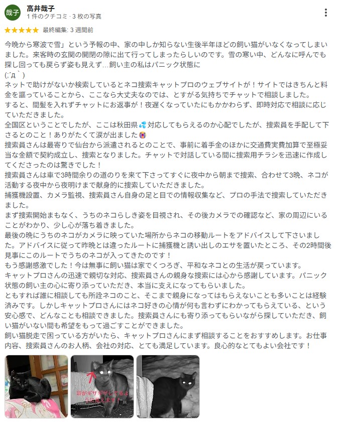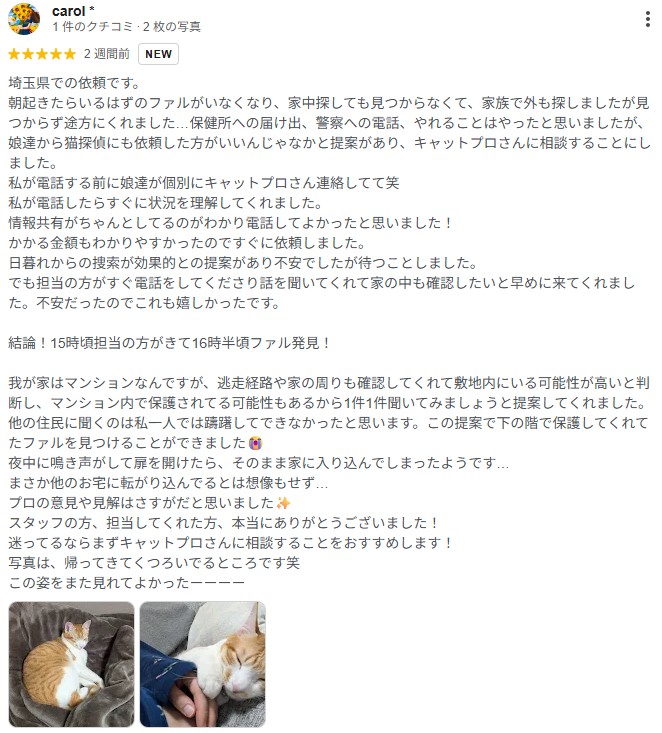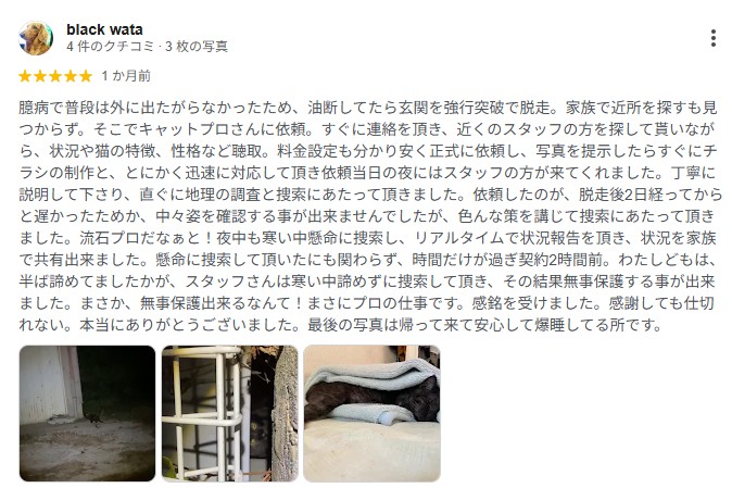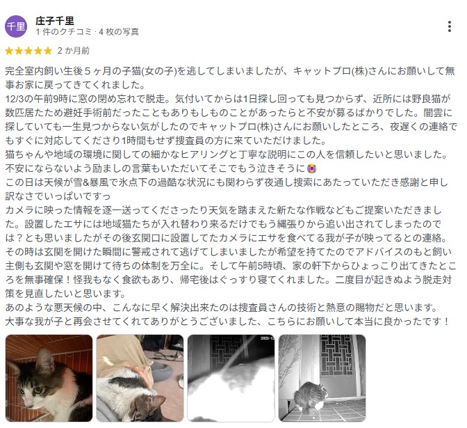 猫ちゃん捜索をご依頼いただき、