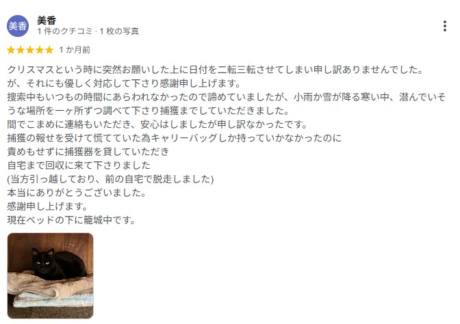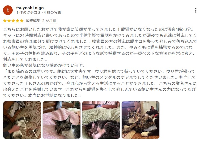 迷子の猫ちゃん捜索、ご連絡から最短30分で